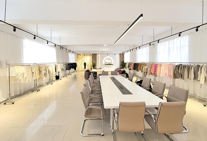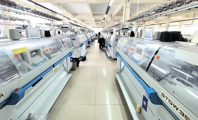 公司厂房占地8000平方米,拥有200台织机设备,针型有1.5GG到3、5、7、9、12、14GG,针织衫的年生产能力约300万件。
